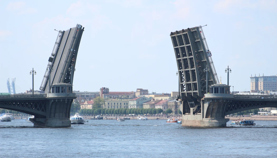 Every year from April to November the Neva comes alive. Every night from April to November, giant bridge wings soar over the Neva. Bridge opening happens at strictly established times. Bridges over the Bolshaya Nevka (Sampsonievsky, Grenadiersky, Kantemirovsky) are opened upon prior request submitted 48 hours in advance.