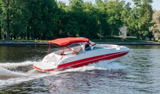 Fast speed, contrasting colors, and a stylish sunshade — you'll definitely stand out even among a huge number of boats.