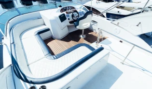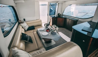 Imagine: you climb to the upper deck (flybridge) with a glass of champagne, settle into a comfortable chair, and watch as the city majestically floats by. And if the weather suddenly decides to be capricious — you descend into the spacious salon with panoramic windows, where you continue to enjoy the views in warmth and comfort.