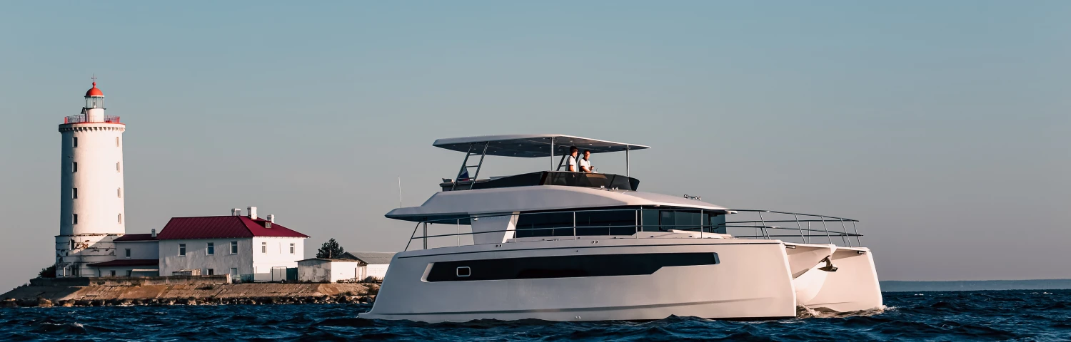 A futuristic catamaran with three decks and incredible stability for those who choose innovation and comfort.